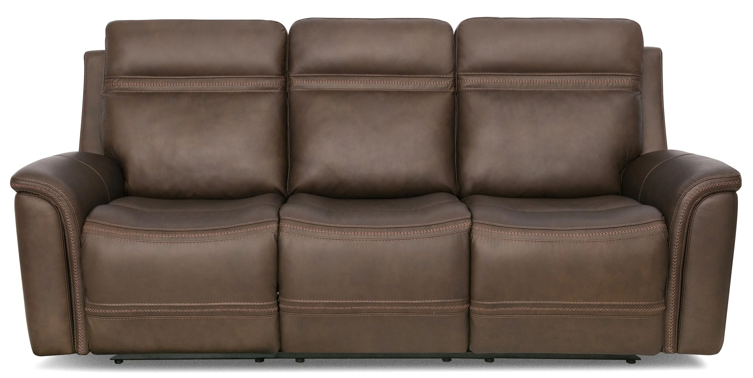 Available in four leather colors and nine fabric colors, San Antonio features classic traditional styling and decorative stitching. The power reclining seat, power headrest, and power lumbar offers the ultimate in customized comfort and support. Available pieces: Sofa, Console Loveseat, and Recliner.